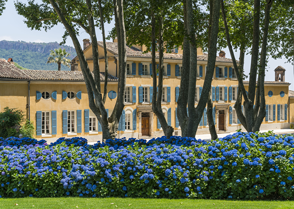 Dans une propriété magique surplombant la Vallée d'Esclans, le Château d'Esclans est situé au cœur de la Provence, au nord-est de Saint-Tropez, avec la Méditerranée en arrière-plan céruléen.