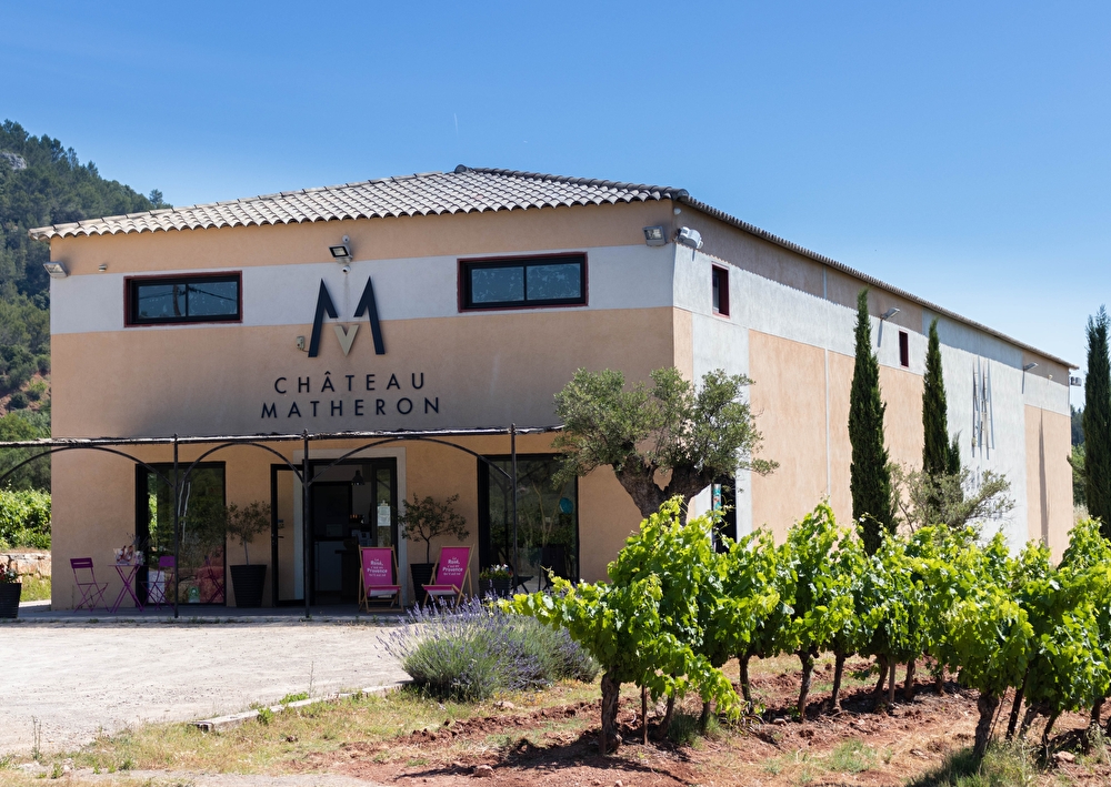 Château Matheron est un domaine familial situé sur l'AOC Côtes de Provence, autour du massif des Maures. Les vignes s'épanouissent sur un côteau argilo-calcaire exposé plein sud, permettant une très bonne maturation du raisin.