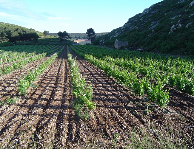 Aujourd’hui, le vignoble rassemble 121 viticulteurs sur 185 hectares, principalement situés sur les hameaux de Saint-Julien et de Saint-Pierre. Cette vaste dépression mêlant calcaire, marne feuilletée et sable bénéficie d’un ensoleillement exceptionnel. La proximité de la mer, les entrées maritimes et le mistral façonnent un climat sec et équilibré, idéal pour l’expression de la vigne.