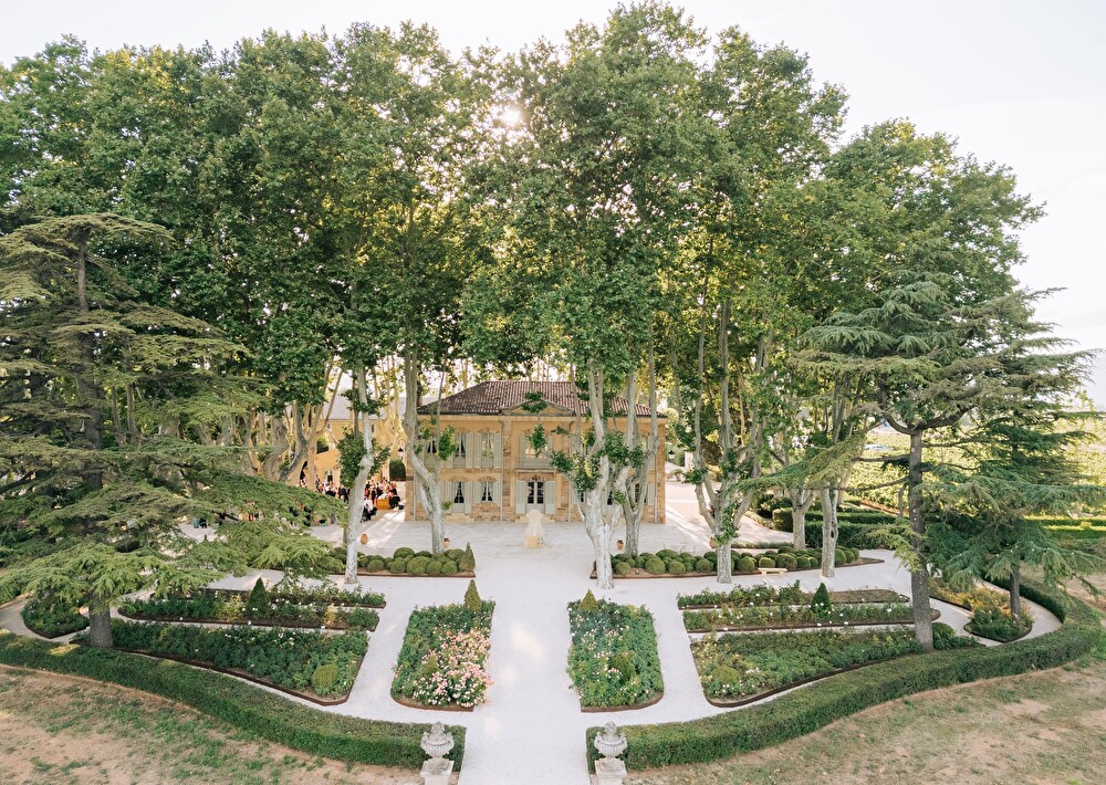 Une magnifique pergola en bois fermée sur trois cotés qui s'ouvre sur le Jardin d'Eden, un jardin au style exotique et typiquement Méditerranéen, avec vue sur le Massif des Maures.La pergola d'une surface de 250 m2 peut contenir jusqu'à 184 personnes assises pour le dîner (tables longues) et 152 personnes assises pour le dîner (tables rondes), tout en gardant assez d'espace pour la soirée dansante.