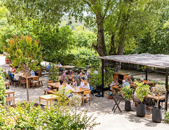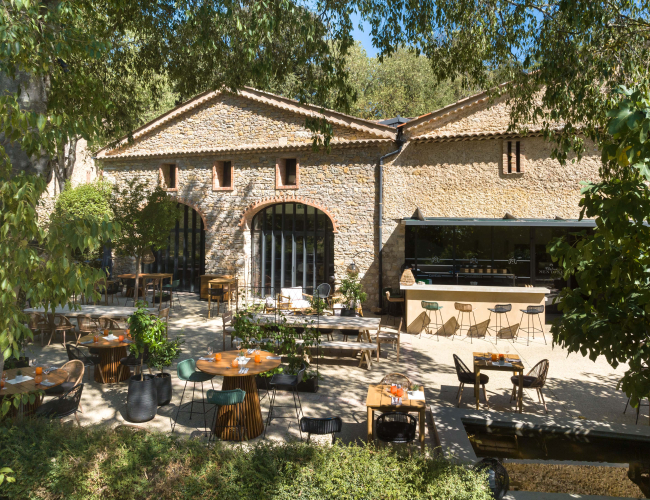 Surface modulable - accès PMR - accès technique séparé pour les livraisons et le traiteur.Attenante à la salle, la terrasse couverte de 135 m² et la tonnelle ombragée d'sune surface de 230 m².La Magnanerie dans sa totalité (600 m² avec la terrasse et la tonnelle) peut accueillir jusqu'à 500 personnes.