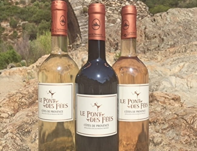 Le Pont des Fées: inspirée par ce patrimoine Grimaudois des XVIe et XVIIe siècles, qui traduit tout le meilleur de l'art du vigneron. Médaille d'or au Concours de Mâcon en 2023 pour le rosé et médaille de bronze au Concours Gal Agricole de Paris 2023 pour le rouge.