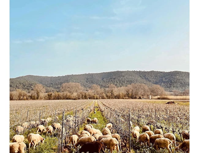 Nous utilisons l’aide de moutons qui viennent paitre dans nos parcelles, cela évite le passage de tracteurs et ainsi le tassement des sols et l’émission de Co2.