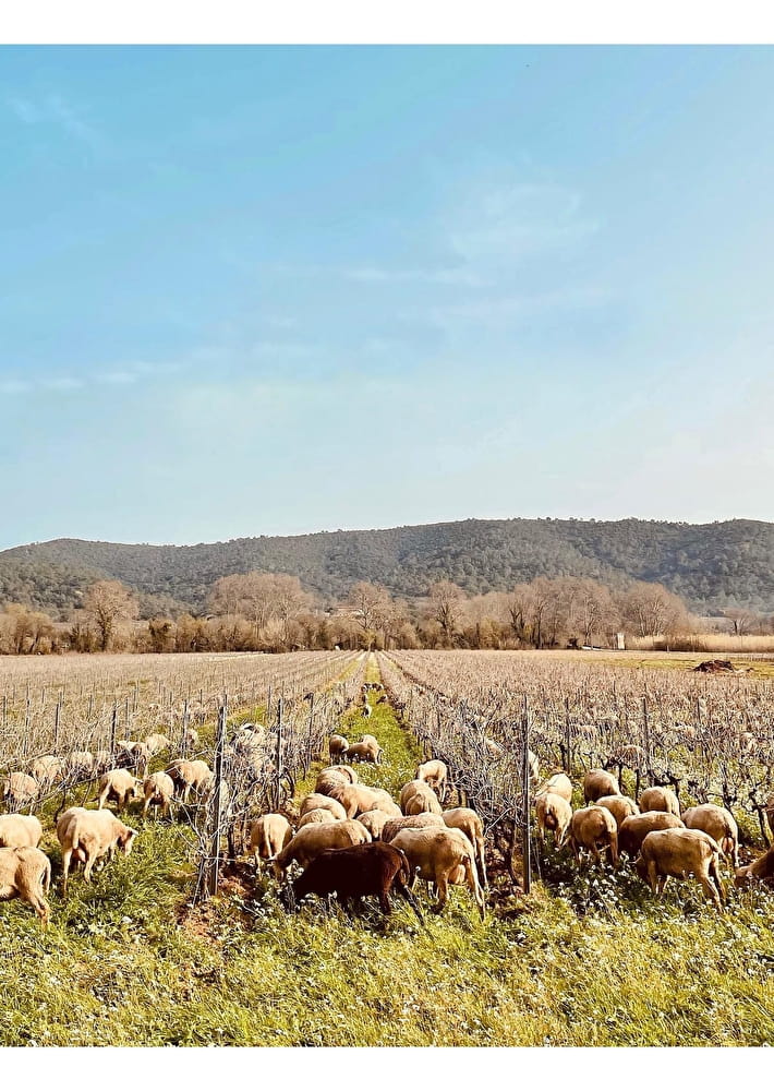 Nous utilisons l’aide de moutons qui viennent paitre dans nos parcelles, cela évite le passage de tracteurs et ainsi le tassement des sols et l’émission de Co2.
