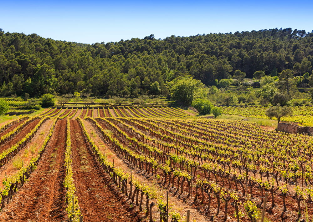 The vineyards are situated on exceptional terroir. Grenache, Syrah, and Cinsault produce superior rosé wines. Rolle, the only grape variety used for white wine production, offers a powerful fruity and floral aroma. Mourvèdre and Carignan contribute tannic structure and fruitiness to our red wines.