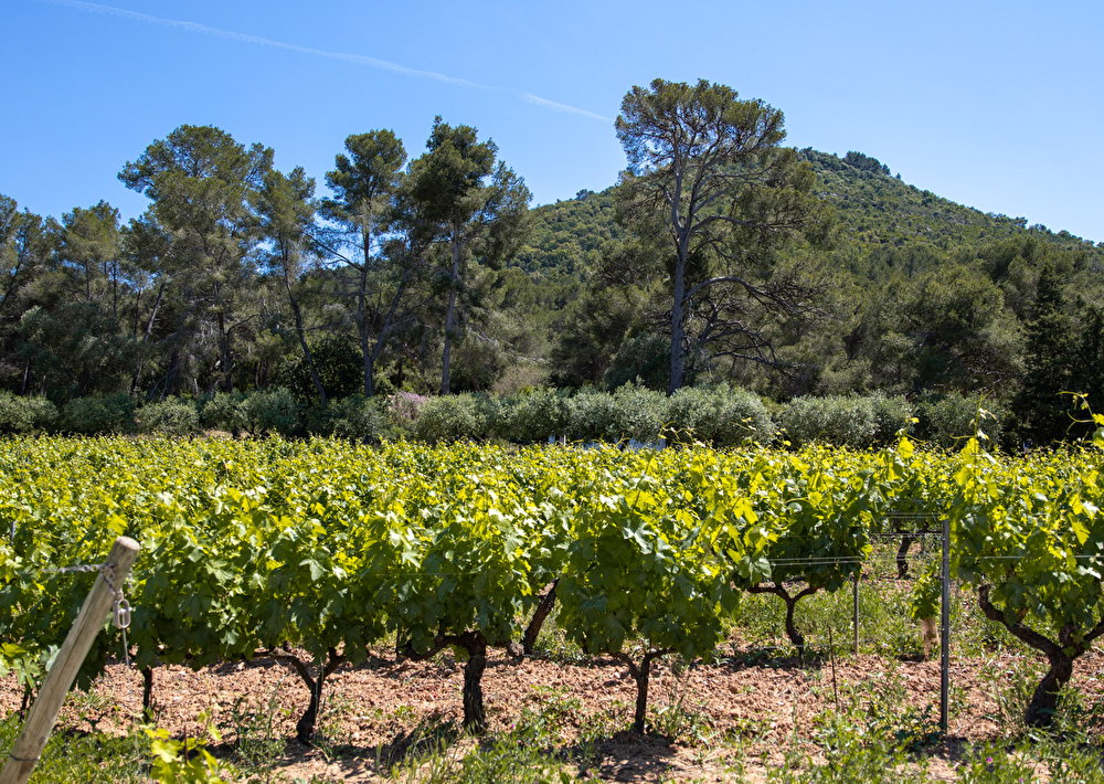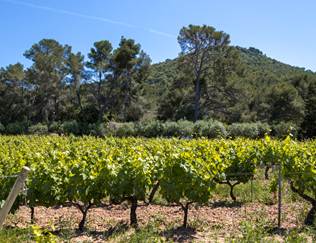 Différents cépages sont travaillés : Grenache, Syrah, Mourvèdre, Tibouren et Cinsault pour les rouges et les rosés, Rolle, Clairette et Muscat pour les blancs.