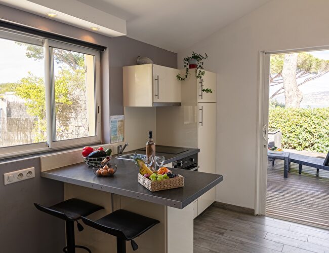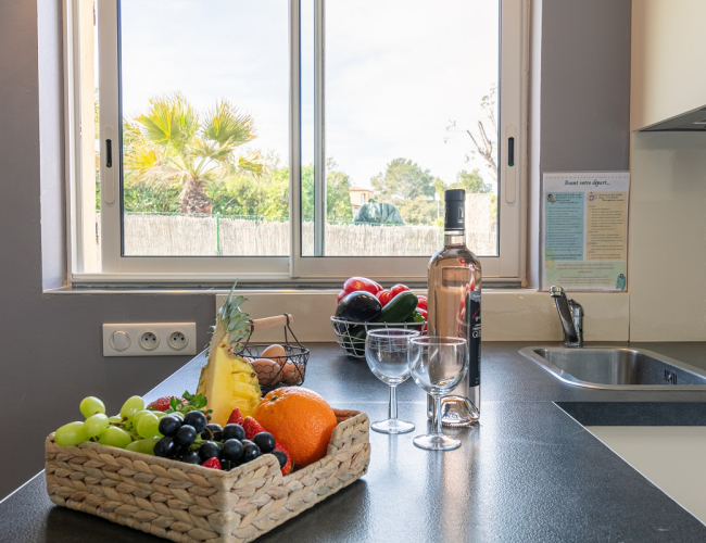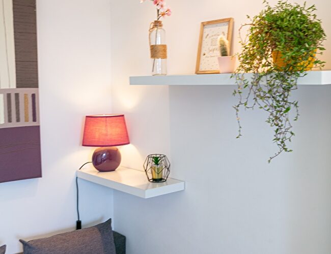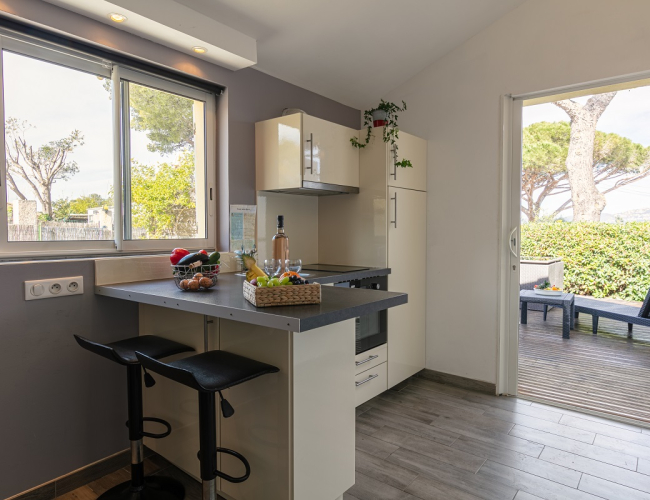Logement cosy avec cuisine équipée, canapé convertible 140 cm, salle de bain dotée d'une douche et toilettes.