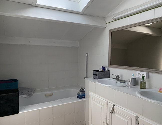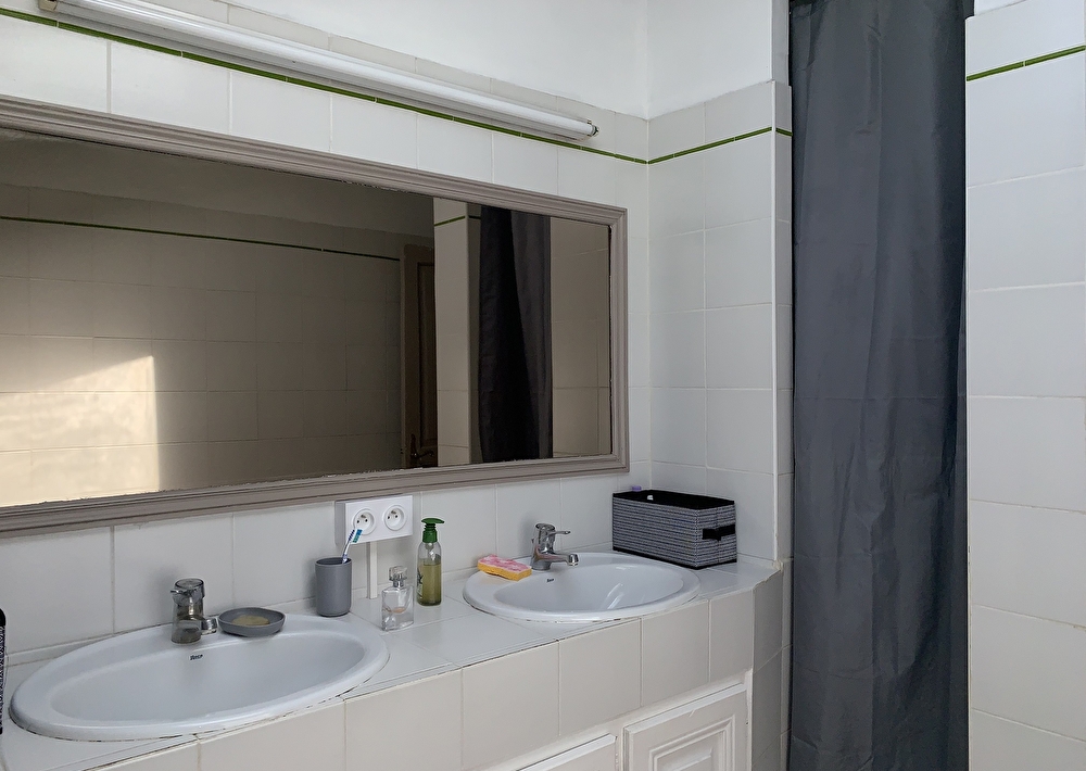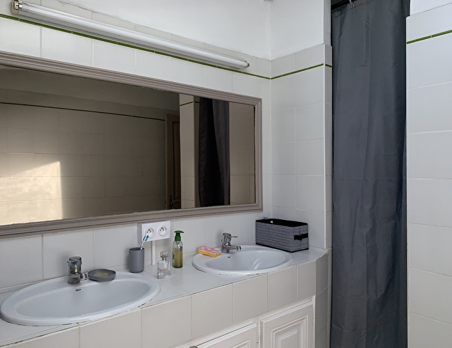 - 1 salle d'eau avec double vasque, baignoire et douche
