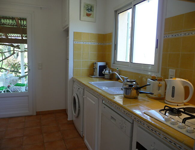 Jolie petite maison individuelle avec tout le confort, au milieu des vignes, terrasse recouverte d'une magnifique glycine, salon de jardin, bains de soleil, terrain d'1 ha. Située dans un petit village typiquement provençal avec toutes ses commodités. Accès par un chemin de terre de 100 m.
