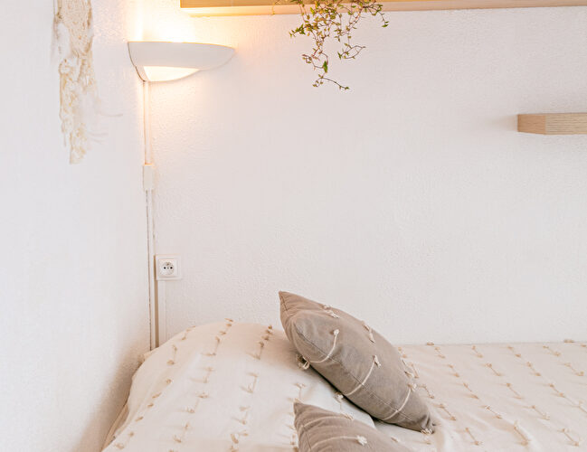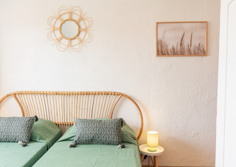 Maisonnette mitoyenne climatisée pouvant accueillir jusqu’à 4 personnes. Idéale pour un séjour entre amis, en famille ou en amoureux. Vous y trouverez une chambre avec un lit en 160, une autre chambre avec 2 lits simples en 80, une salle de bain avec douche. Toilettes séparés.