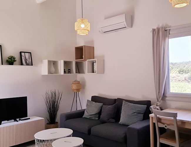 Notre Gîte Oiseaux I, de 40 m² et rénové en 2023, allie le charme provençal au confort moderne. Depuis le salon, vous pourrez profiter d'une vue imprenable sur les vignes qui s'étendent à perte de vue. Le salon-salle à manger lumineux est équipé d’un canapé-lit, et la chambre dispose d’un lit double spacieux (160x200 cm).