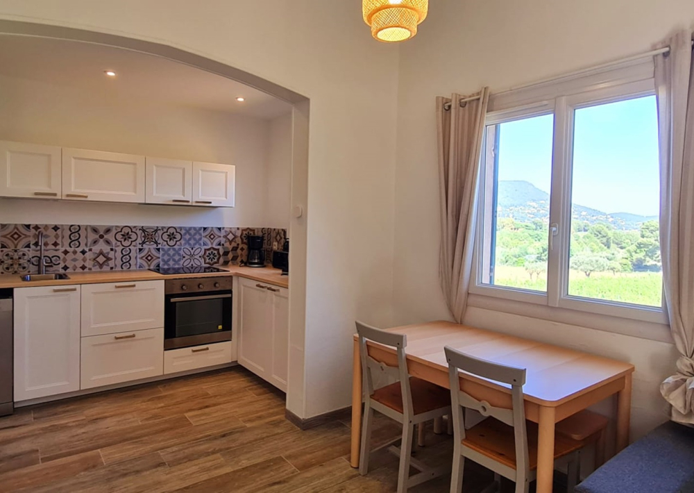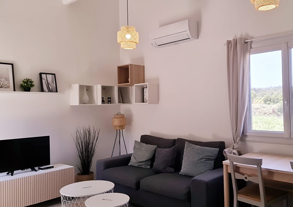 Notre Gîte Oiseaux I, de 40 m² et rénové en 2023, allie le charme provençal au confort moderne. Depuis le salon, vous pourrez profiter d'une vue imprenable sur les vignes qui s'étendent à perte de vue. Le salon-salle à manger lumineux est équipé d’un canapé-lit, et la chambre dispose d’un lit double spacieux (160x200 cm).