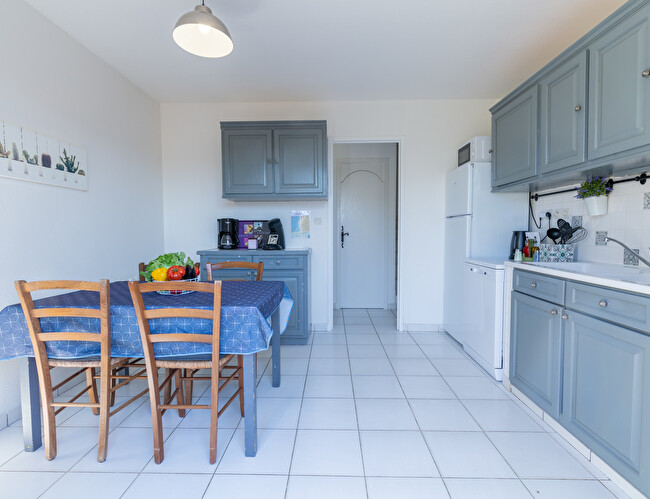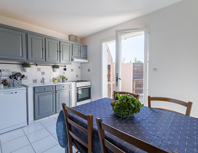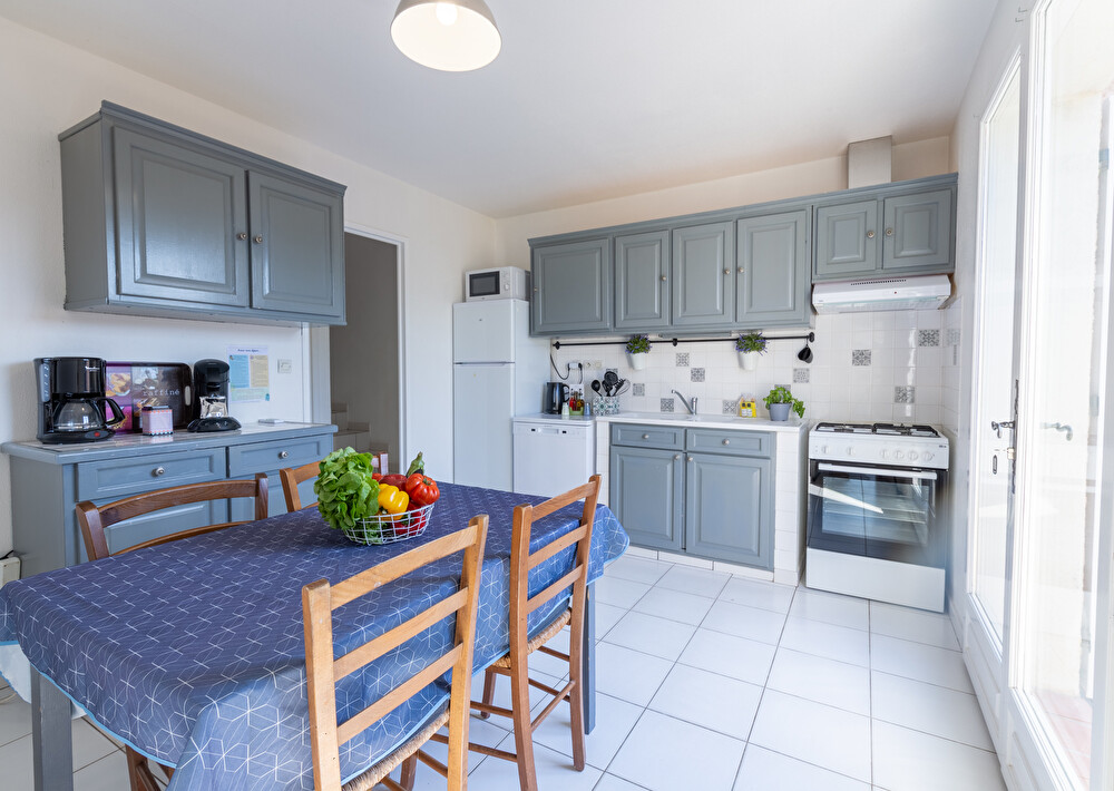 Cuisine entièrement équipée avec four, réfrigérateur, plaque de cuisson, cafetière, etc...