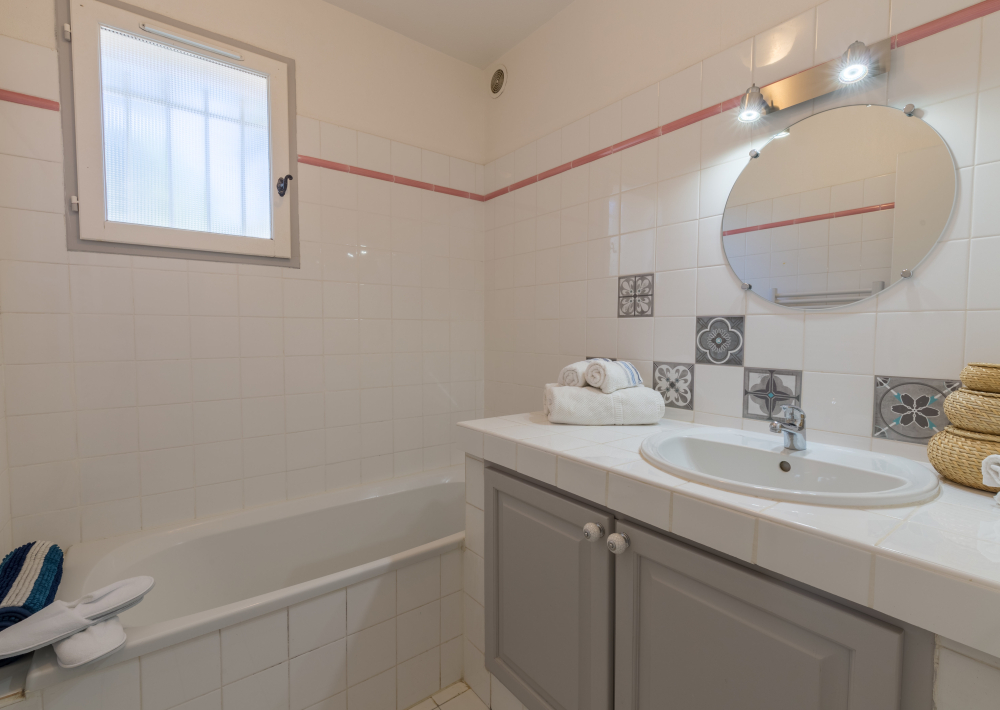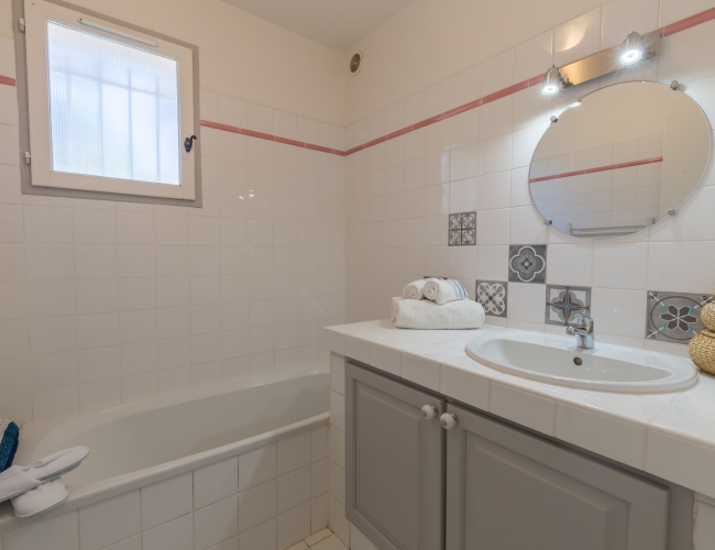 Vous y trouverez à l'étage une suite parentale avec douche et toilette et au rdc une chambre avec 2 lits simples de 80 cm, un canapé convertible et une deuxième salle de bain avec baignoire.
