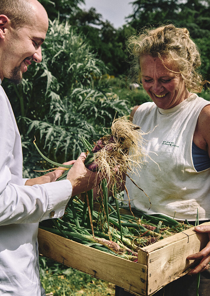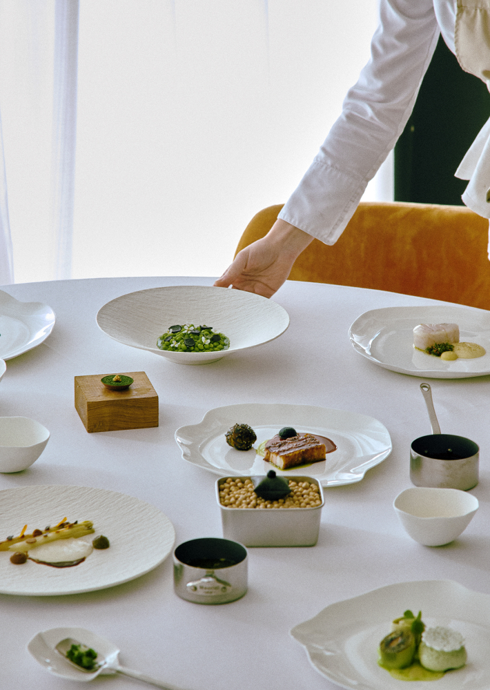 Au-dessus des vignes et des drapeaux arc-en-ciel flottants de Daniel Buren, vous dégusterez des plats raffinés, de saison, aux associations gustatives audacieuses au cœur du vignoble où officie le Chef Benjamin Le Balch.