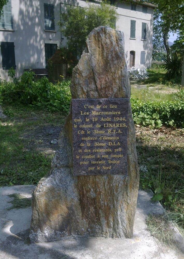 Une fois Pierrefeu du Var libéré, c’est à la « ferme des marronniers » que le colonel de Linares dressera un camp avant de repartir pour libérer Toulon.