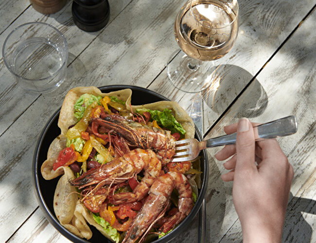 Le Bistrot de Lou offers a friendly lunch with its assortment of salads and its menu of grilled meats and fish.
