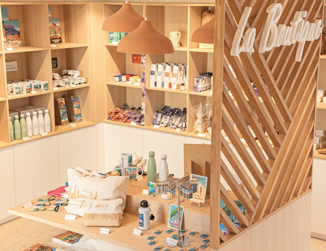 Envie de rapporter un souvenir unique pour votre famille ou vos amis ? Vous trouverez forcément votre bonheur au sein de notre boutique de produits dérivés avec des créations exclusives signées par l’illustrateur varois Monsieur Z (mug, magnet, plaque alu, cartes postales etc.). Vous y retrouverez également d’autres produits locaux tels que lavande, savons artisanaux et spiruline. Retrouvez ces souvenirs dans tous nos points d’accueil ainsi qu’à la Maison du Chocolat et Cacao.