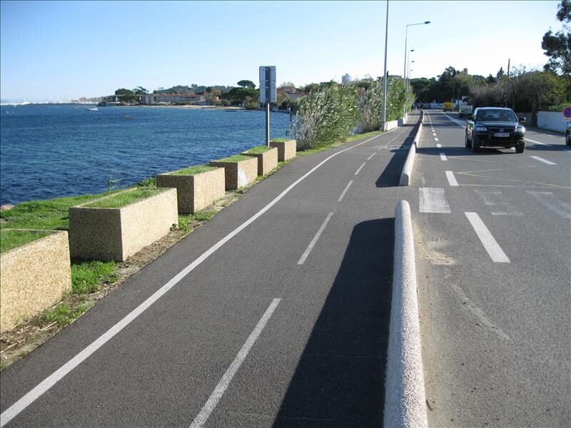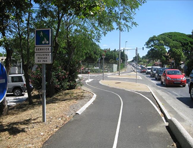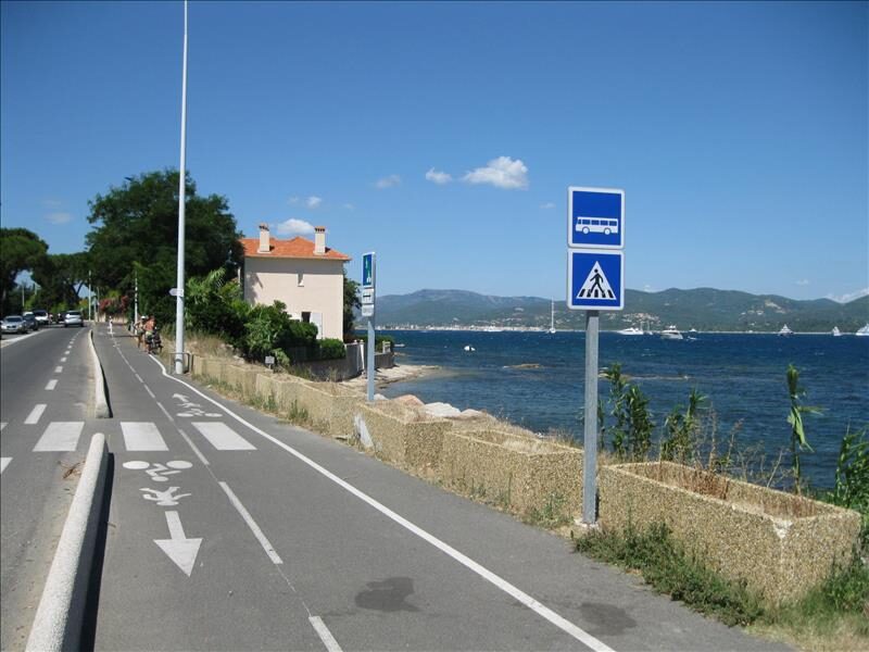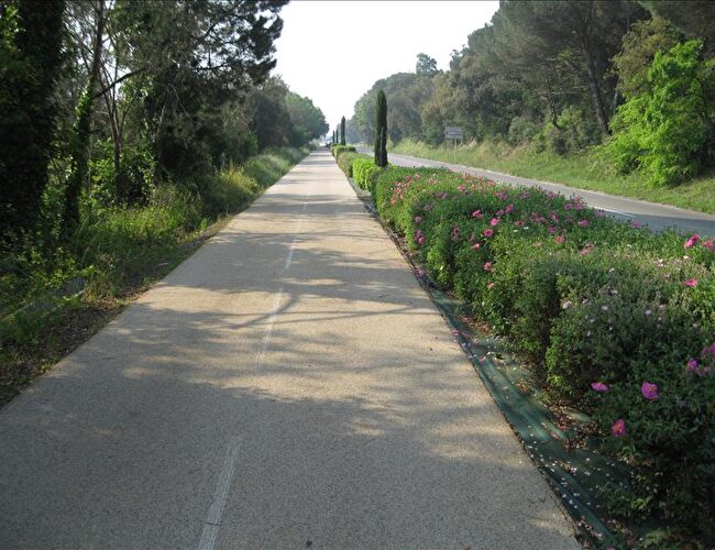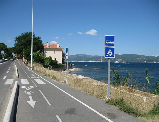 - Au départ du rond-point de la Foux en direction de St Tropez en suivant la RD98A en site propre et site partagé sur une longueur de 4 km.