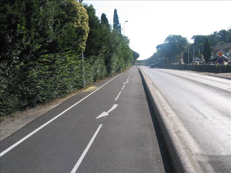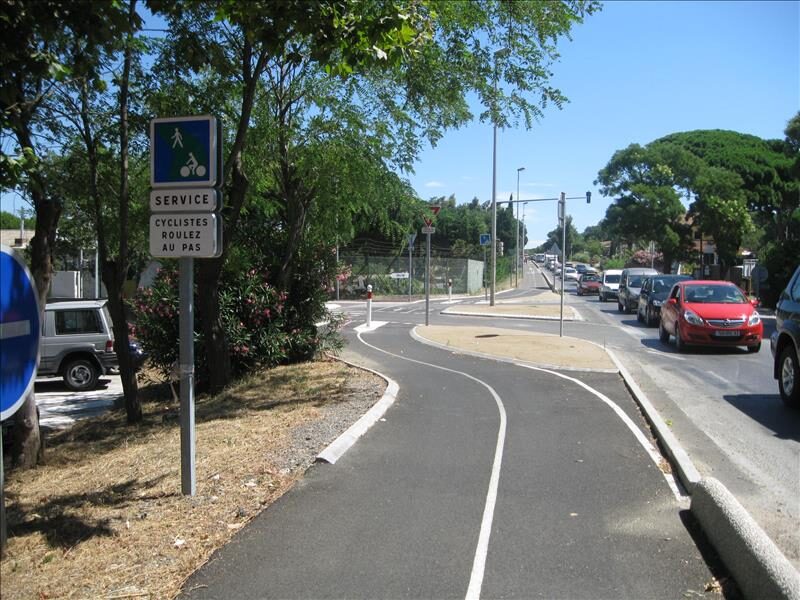 - Piste cyclable :site propre réservé aux cycles à deux ou trois roues, indique aux piétons et aux conducteurs des autres véhicules qu'ils n'ont pas le droit d'emprunter cet aménagement ni de s'y arrêter (exception faite des véhicules de secours, pompiers, police, véhicule de service et sur certains tronçons aux riverains autorisés et cyclomotoristes). En l’absence de trottoirs ou d’accotements praticables, les usagers non motorisés (piétons, rollers, personnes à mobilité réduites…) doivent cheminer sur la partie gauche de la chaussée.