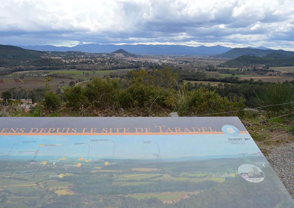 Depuis l'ensemble médiéval du Taradel, un point de vue sur la vallée de l'Argens et l'ensemble du Massif des Maures.