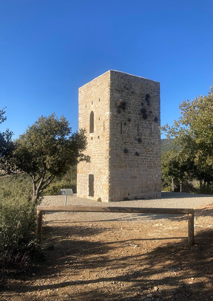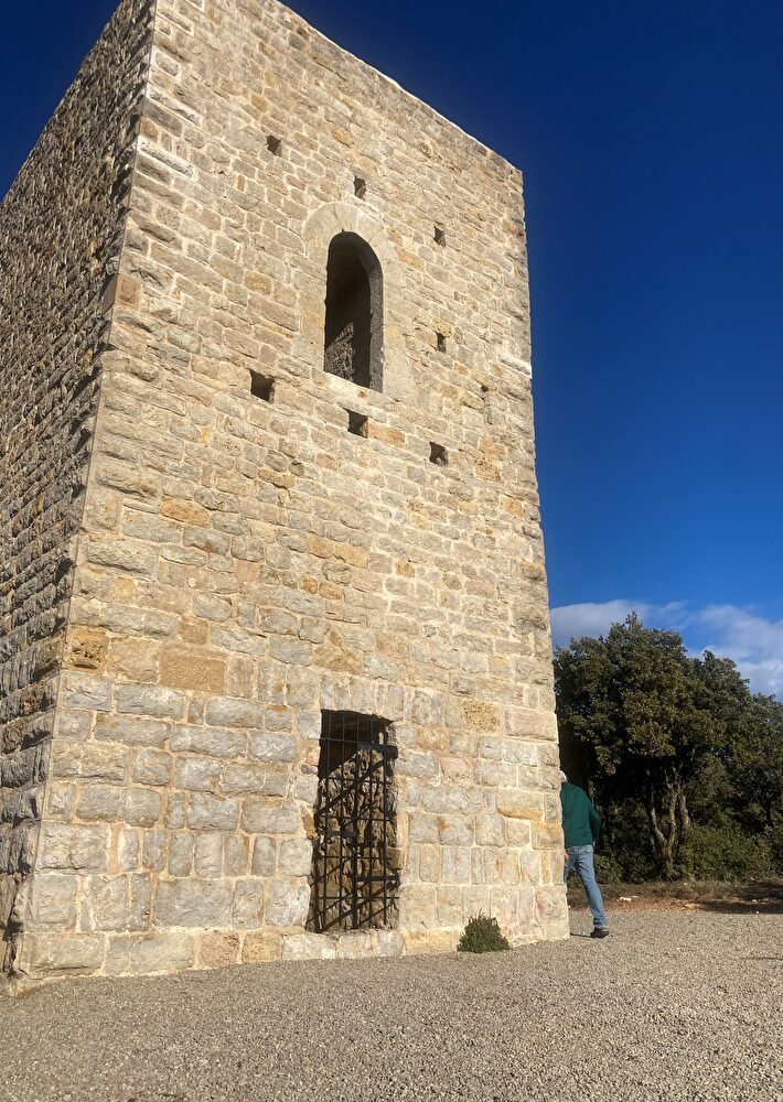 Traverser la place des Ormeaux et à la fontaine, prendre à droite, la rue du Lavoir. Continuer tout droit sur le chemin de Chavardet jusqu’au croisement avec la D51. Traverser en étant prudent ! Continuer sur l’ancien chemin d’Aups jusqu’au prochain panneau « Tour Grimaldi » à gauche (poubelles à l’entrée du chemin). Continuer sur le chemin de terre, prendre tout droit jusqu’au bout et gagner Tour avec le point de vue. Puis, faire demi-tour et suivre le même itinéraire pour rejoindre le village.