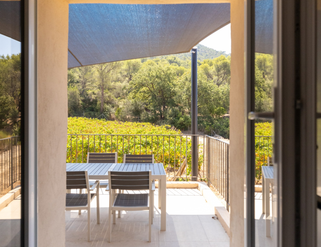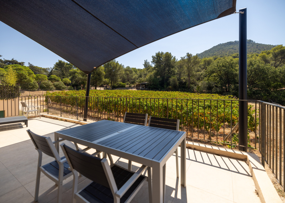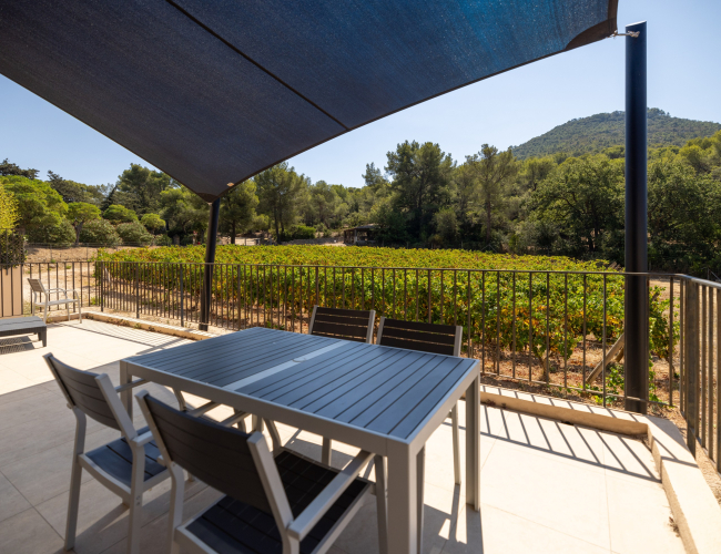 Qu’il bénéficie d’une vue mer ou sur les vignes, chaque gîte dispose d’une terrasse avec mobilier d’extérieur.