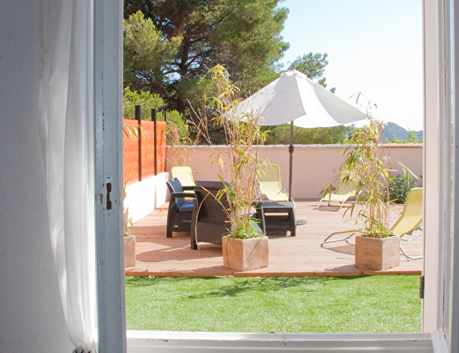 Villa mitoyenne climatisée pouvant accueillir jusqu’à 8 personnes.