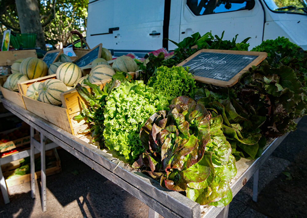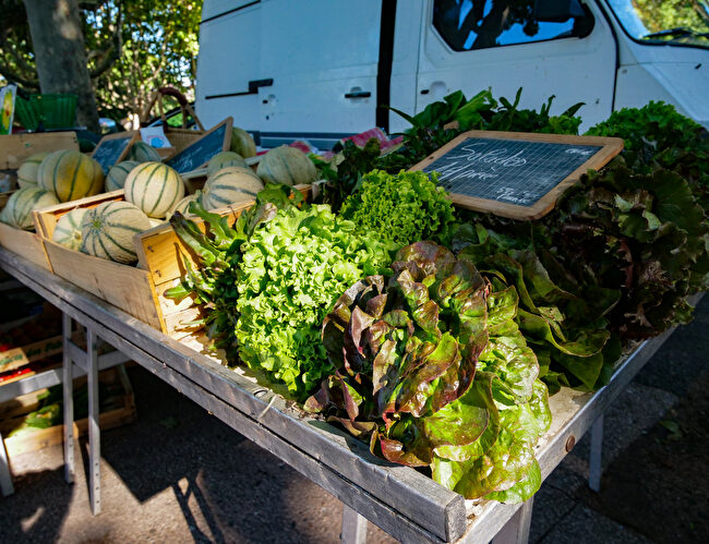 Fruits et légumes des producteurs locaux, le marché se déroule tous les mardi et vendredis matins, au cœur du village de Saint-Cyr-sur-Mer.