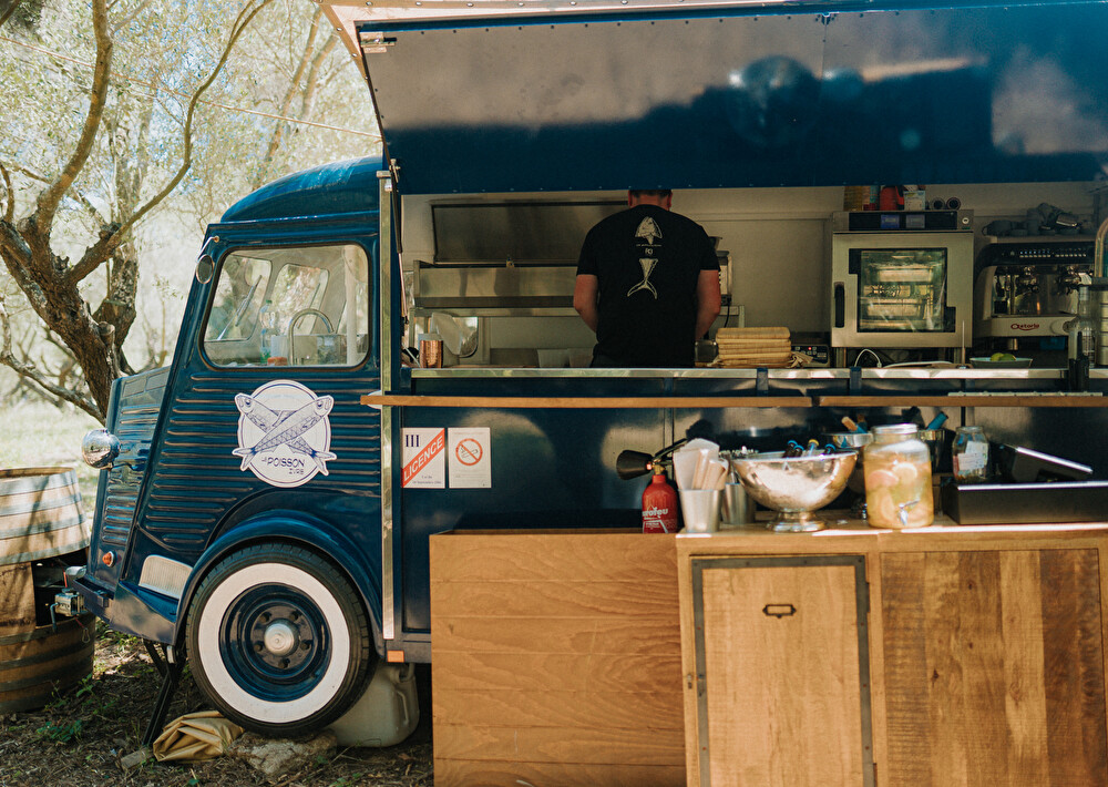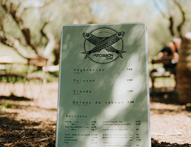 Dans le jardin de la Villa Carmignac, à l’ombre des pins, le restaurant Le Poisson Ivre accueille les visiteurs tous les jours d’ouverture à midi et les vendredis et samedis soir pendant l'été. Le Chef Hugo Mancel propose une cuisine locale et raffinée accompagnée d’une carte des vins du domaine La Courtade, vignoble adjacent à la Villa Carmignac.