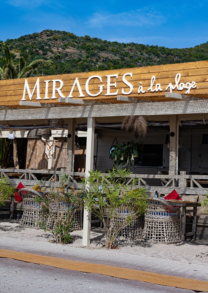 Mirages à la plage est niché au bord de la Méditerranée, entre pins parasols et criques préservées.La terrasse surplombe la mer et la plage est accessible directement depuis le restaurant.