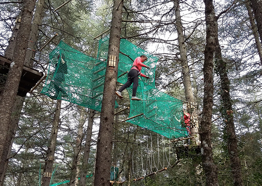 - un parcours dans les arbres, original et idéal pour les moins téméraires d'entre nous, dans des filets sécurisés,
