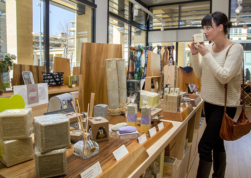 Vous trouverez à l'Office de Tourisme une grande boutique de 80M2 proposant des articles souvenirs rigoureusement sélectionnés : des produits artisanaux (céramiques, santons, savons, bijoux...) et du terroir (calissons, tapenades, huile d'olives, miel, bières et vins locaux) des livres d'art, des guides touristiques, et même des boissons fraîches (eau minérale 50cl).