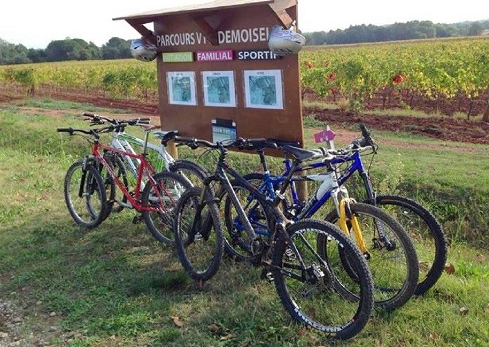 3 parcours VTT. Ces chemins sont balisés dans les vignes et dans la forêt suivant un code de couleur :