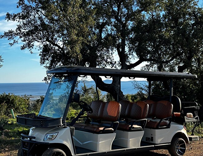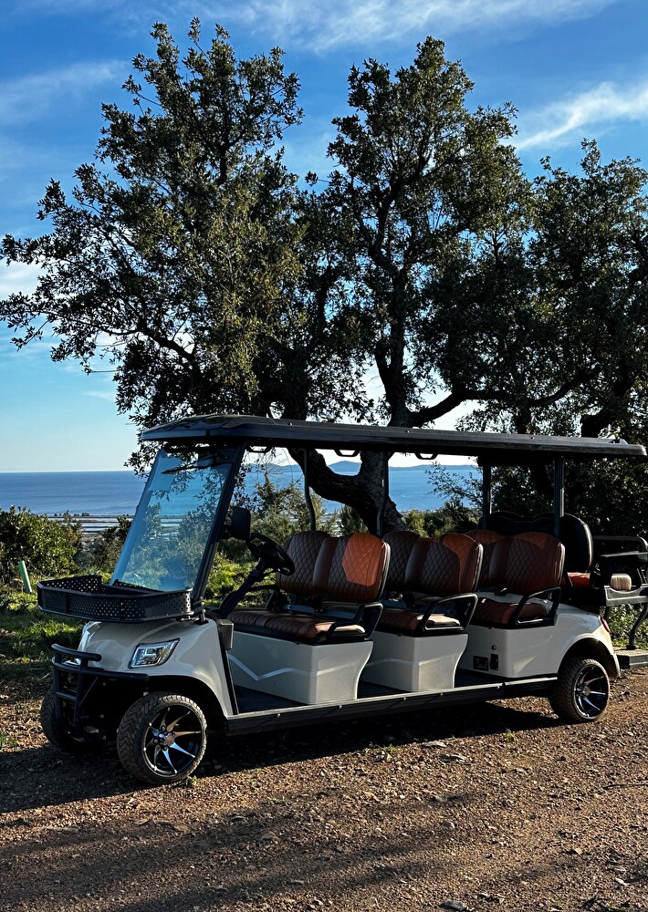 Explorez le Château Galoupet à bord d’une voiturette électrique, au fil d’un parcours au cœur du massif forestier. À 200 mètres d’altitude, laissez-vous séduire par une dégustation du Galoupet G 2025, avec vue sur les Salins d'Hyères et les îles d’Or.