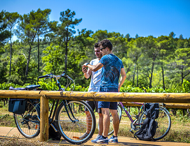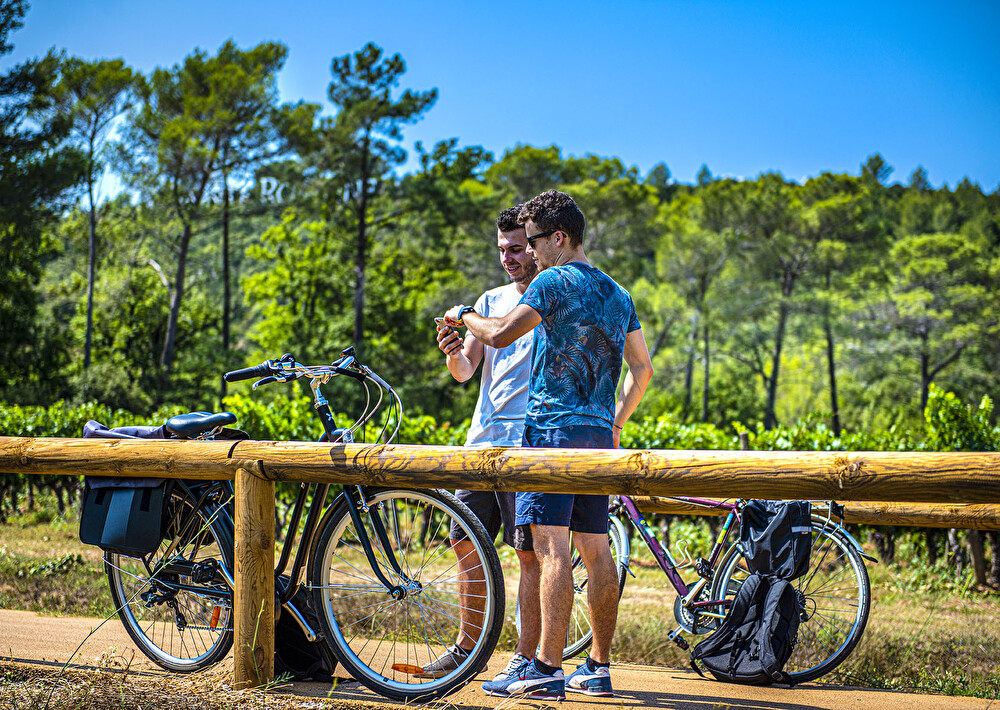 Suivez la Vigne à Vélo en direction du village des Arcs sur Argens. Prenez le temps de découvrir et visiter le Château Font du Broc et sa surprenante cave souterraine construite par les Compagnons, ses jardins à la française et offrez-vous une dernière dégustation des vins classés « Côte de Provence ».