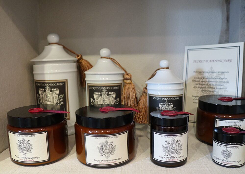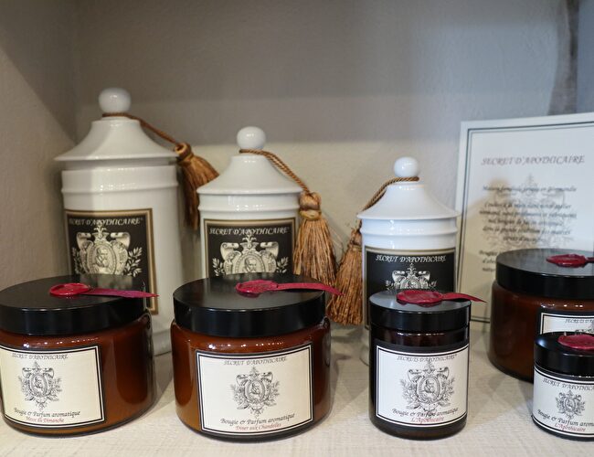 - les bougies "Secret d'Apothicaire" et de " Cire Trudon " , manufacture Royale créée par louis XIV en 1643