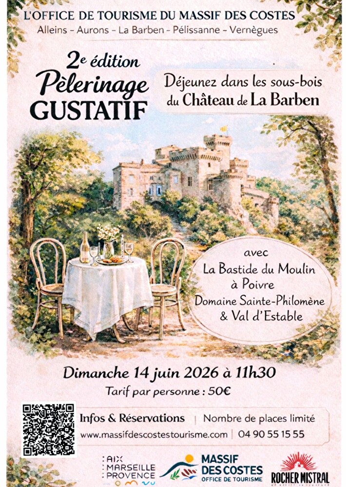 Retrouvons-nous au château de La Barben pour un apéritif au cœur du parc puis laissez-vous surprendre par un déjeuner en 3 étapes, préparé par le chef Max Kadaoui de La Bastide du Moulin à Poivre, et servi sous les chênes du château, lieu exceptionnellement ouvert pour l'évènement.
