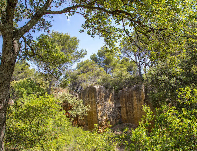 Niché entre Aix-en-Provence et la montagne Sainte- Victoire, ce site fait partie intégrante de l’histoire de la ville et sa montagne. La pierre raconte des temps immémoriaux où vivaient dans les carrières de nombreux animaux marins. Traces d’outils et fronts de taille témoignent de la fondation de la ville de l’ère romaine jusqu’au XXe siècle. Enfin, le paysage teinté de couleurs ocre, vert et bleu rappelle que le célèbre peintre aixois Cezanne en fit, jadis, son atelier.