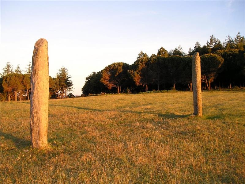 Ces blocs monolithes taillés dans un banc de gneiss local mesurent 3m15 et 2m82 de hauteur. Ils peuvent être attribués à une période comprise entre la fin du Néolithique et l'Age du Bronze, toutefois aucun vestige archéologique n'a été découvert à proximité et d'une façon générale, on ignore encore qu'elle était la signification de ce type de monument : bornes, idoles primitives...