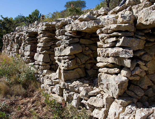 Aux environs de ruines et de restanques, se trouvent de surprenantes niches aménagées dans un mur en pierres sèches bien conservé.