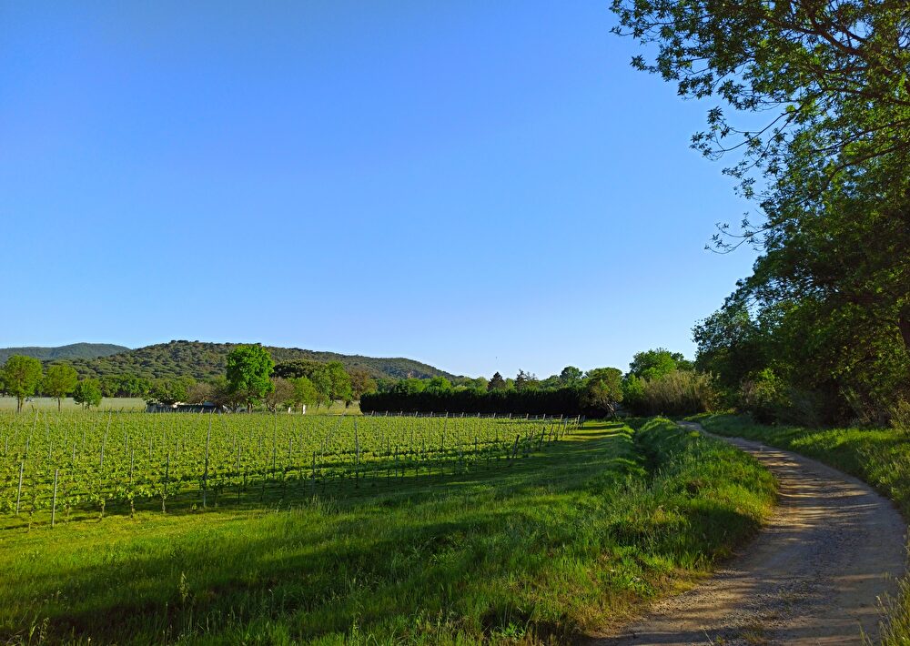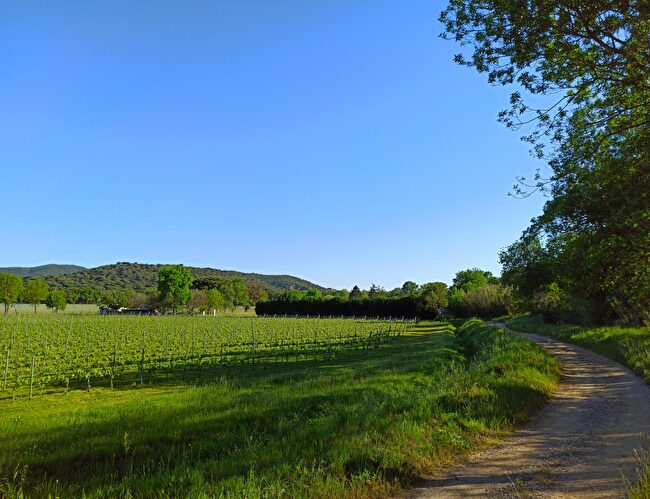 • traverser la route du Bourrian et trouver quelques mètres sur votre gauche un sentier qui, après un guet, vous conduit au chemin de la Plaine, à travers les vignes du domaine du Bourrian (1,15 km) ;
