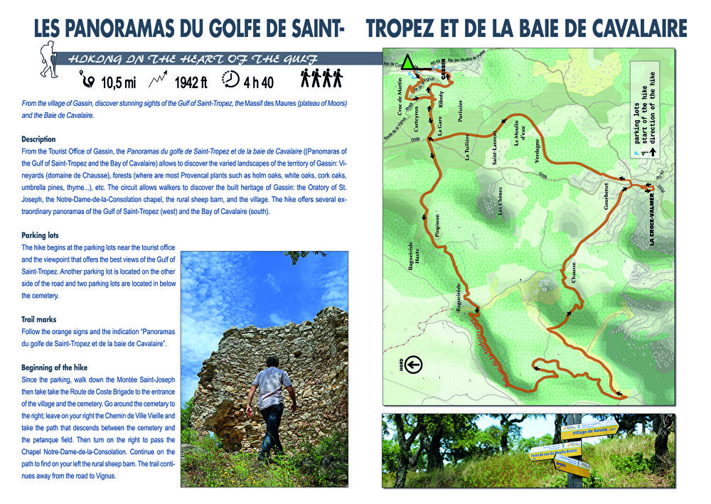 Ce sentier de randonnée reprend une partie du GR 51 et vous offre de splendides vues sur le golfe de Saint-Tropez, la Baie de Cavalaire, le pays des Maures, et les villages Gassin et Grimaud.