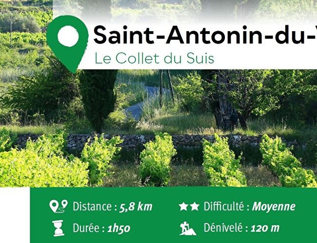 Plus loin, il rencontre le chemin du Collet du Suis (marques jaunes et rouges) que l'on prendra sur la droite (4) et qui ramènera au Cimetière.