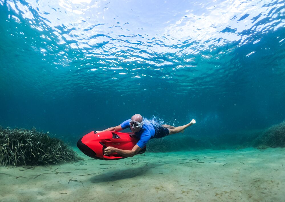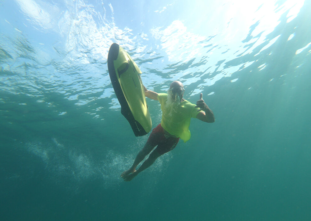 Sans nuisance sonore et olfactive, venez découvrir les fonds marins. Glisse intuitive, sensation d'être un dauphin sont aussi au rendez-vous avec le Seabob.