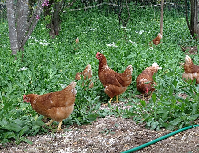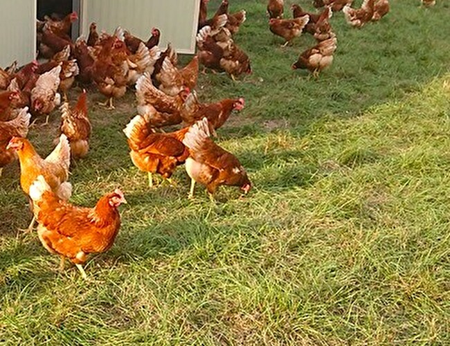 Ferme avicole nichée au cœur de la verdure et qui compte plus de 700 poules pondeuses bio.